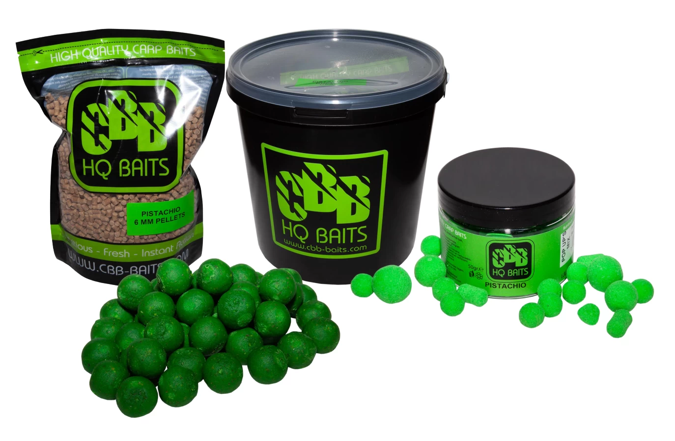 The CBB Pistachio ‘Ready To Fish’ Bucket is extremely effective on high-pressured waters! These boilies and pop-ups consist of top quality ingredients and guarantee a long-lasting release of flavour and scent. This attracts carp extremely well. The boilies, pop-ups and pellets are the results of extensive testing on different types of waters!