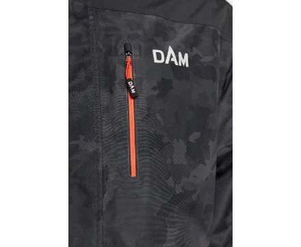 Stay warm and dry in the harshest conditions with this two-piece thermo suit from DAM. Made from tough Taslon polyester with extra reinforcement at the knees and elbows. The suit is fully wind- and waterproof and has a detachable hood. The adjustable hem and elastic suspenders give the suit a comfortable fit. The jacket pockets are waterproof with a zip to safely store your belongings. The trouser legs are also adjustable, just like the elastic suspenders with snap closure. Executed in strong black-grey CamoVision print. A perfect suit for cold and wet winter days.