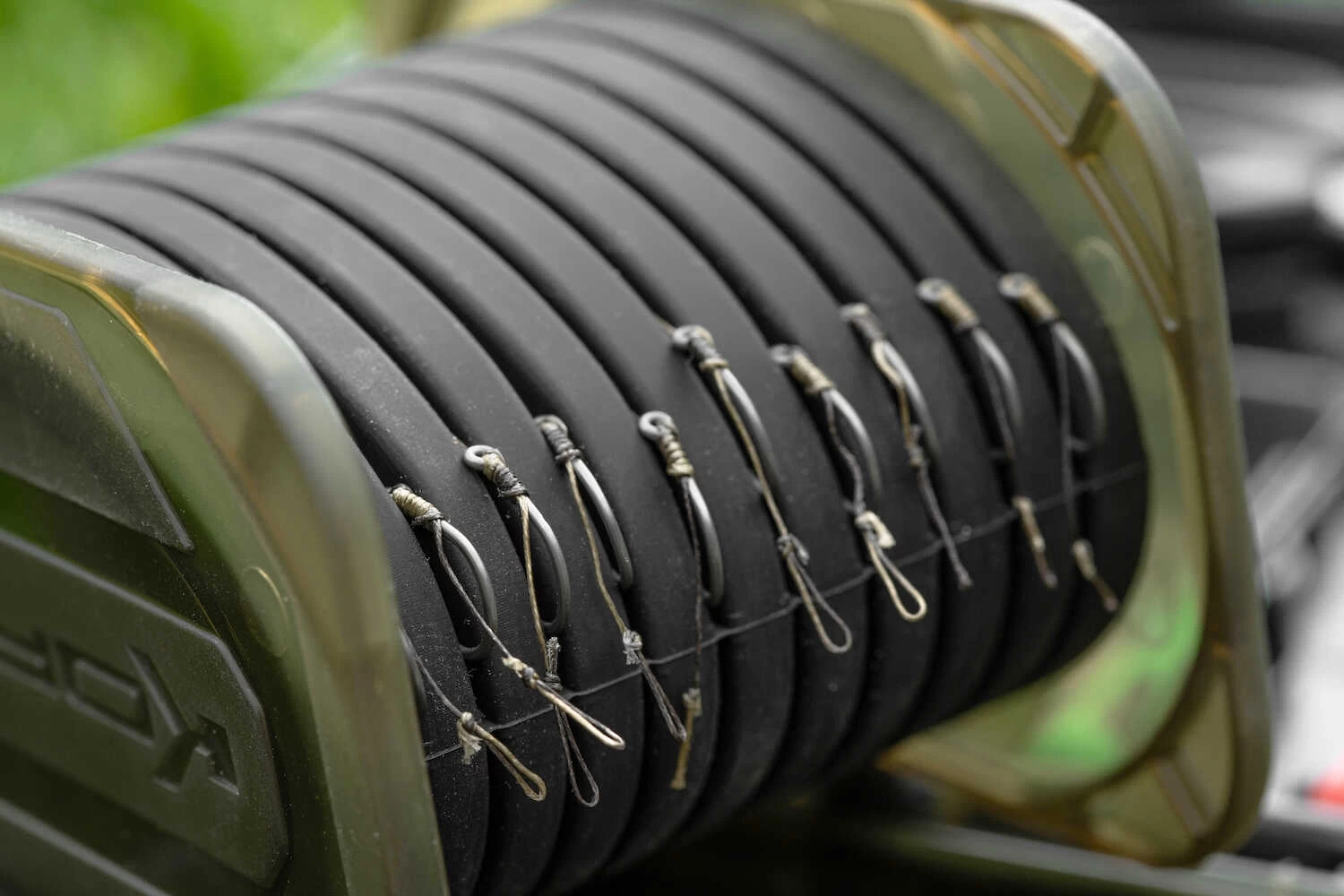 BLOX is a new concept for equipment storage, completely aimed at the angling all-rounder. This handy rig box from Korum is of a whole new level! No pins are needed to secure your leaders. The leaders can easily be placed on the rig box, the silicone part keeps the hook in place.