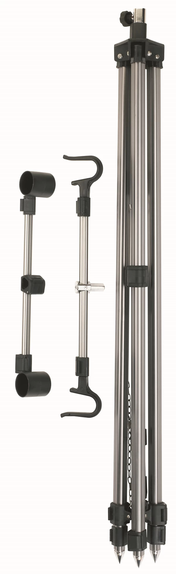 The Sunset Sunpod Surf is a fully adjustable tripod, and it can accommodate up to 2 rods. This tripod is specially designed for fishing from the shore. Features a compact elongated transport format, so it fits easily in the car. Equipped with pins under the legs for maximum grip in loose sand or between stones. Further, equipped with 2 removable supports for positioning and supporting the rods. The small trays at the bottom ensure that the rod remains firmly on the beach support during a bite.